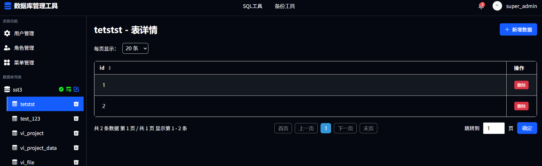 点击查看数据按钮跳转显示该数据库表的数据信息。