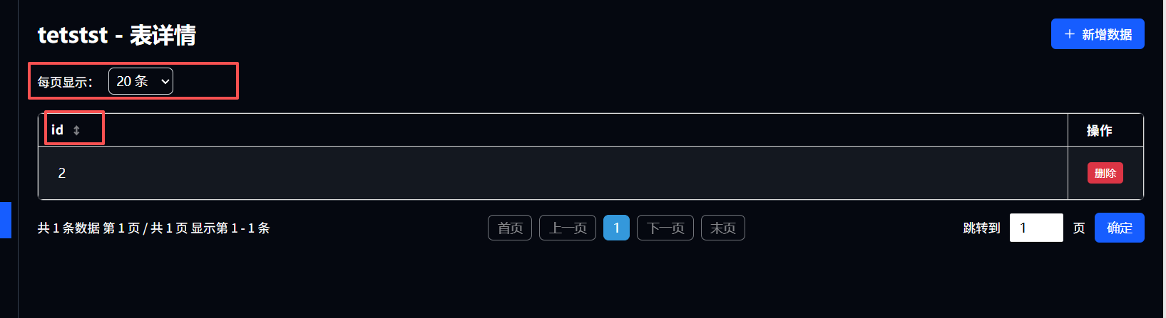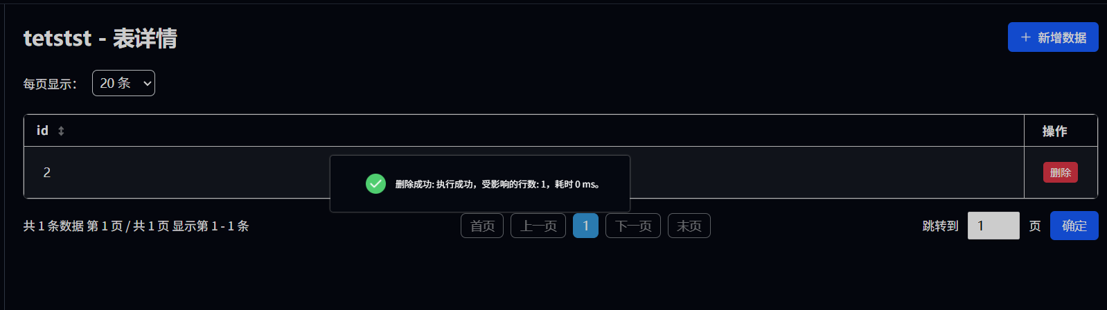 删除数据,可点击数据列表中操作栏中的删除按钮,点击后即可删除该条选中的数据。